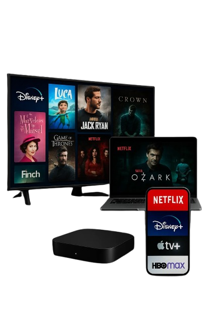 Assista onde quiser, quando quiser: na sua TV Box, Smart TV, Computador, Celular, Fire Stick ou Navegador, através de aplicativos exclusivos para Android, IOS, Windows e WebPlayer.